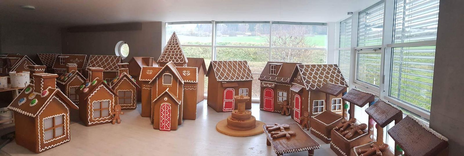 Réalisation d’un concept de décor en intégrant des sapins véritables, des automates et une grande roue. Déco Prod’ a fabriqué des maisons en forme de pain d’épices et une fontaine en utilisant du polystyrène comme matière première et beaucoup de savoir faire pour les rendre appétissantes! La pose des éléments a été réalisée par nos soins.